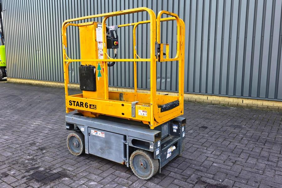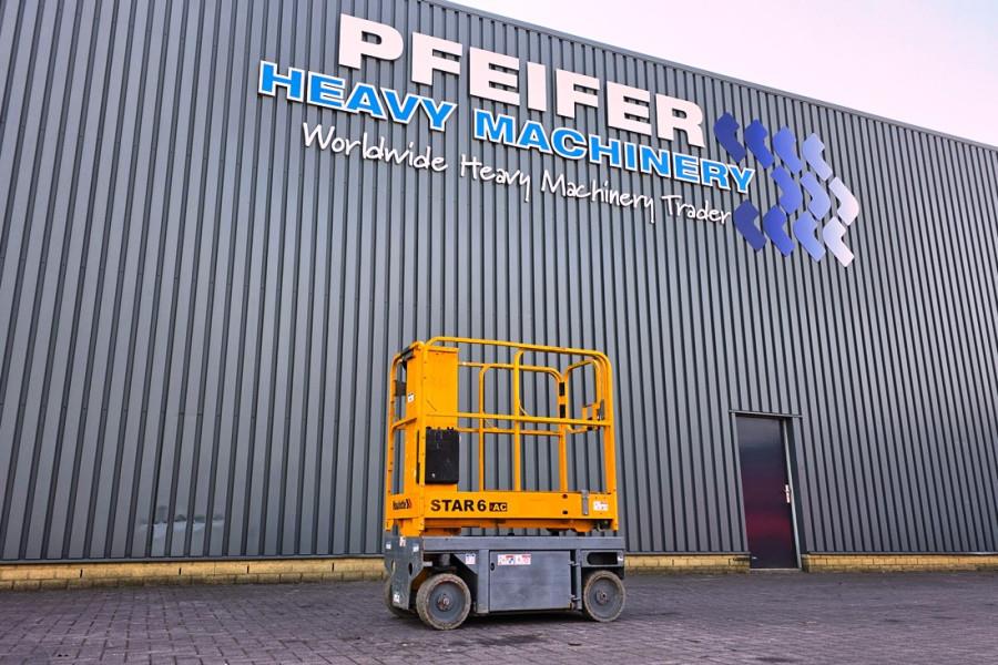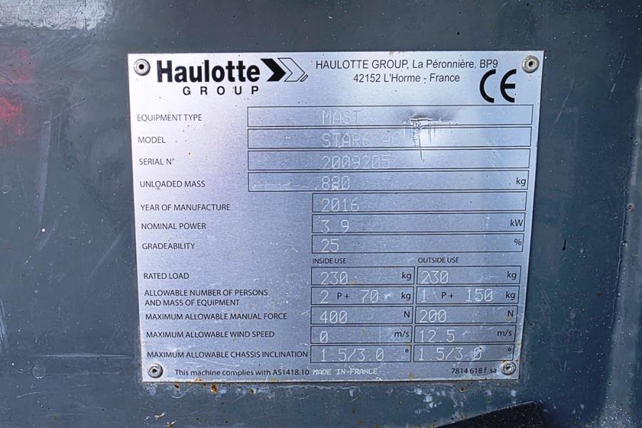 Self-Propelled Vertical Lift Haulotte Star 6AC E Year 2016. Manufacturer: Haulotte Typ: Star 6AC E Building year: 2016 Fuel: Electric, Batteries(2024) Serial number: 2009205 Working Hours: 436 h Working height: 5.8 m Max driveable platf. height: 3.8 m Lift capacity - inside 230 kg (2 pers.) Lift capacity - outside 230 kg (1 pers.) Platform size with extension: 0.77 x 1.30 + 0.4 m Drive speed proportional 0.8 - 4.5 km/h Tyres - non marking: 318 x 108 Turning radius - outside 1.7 m Tilt alarm: 1.5° / 3° Wheelbase: 1.06 m Ground clearance: 6 cm CE (Declaration of Conformity)