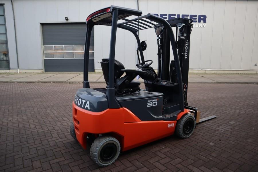 This machine has a valid inspection and can be sold with warranty. Inform about our conditions! This Toyota forklift is also available for rent! Manufacturer: Toyota Typ: 9FBM20T Building year: 2022 Fuel: Electric Serial number: 8FBM20T-16828 Loading / lifting capacity: 2.000 kg. Drive speed: 19 / 20 km/h. Number of axles: 2. * Mast typ: Triplex stage * Lifting height: 4.750 mm. * Freelift Height: 1.600 mm. * Side-shift CE (Declaration of Conformity). More detailed pictures / product movie on our website. pfeifermachinery.com Above specifications are subject to change without prior notice and subject to errors.