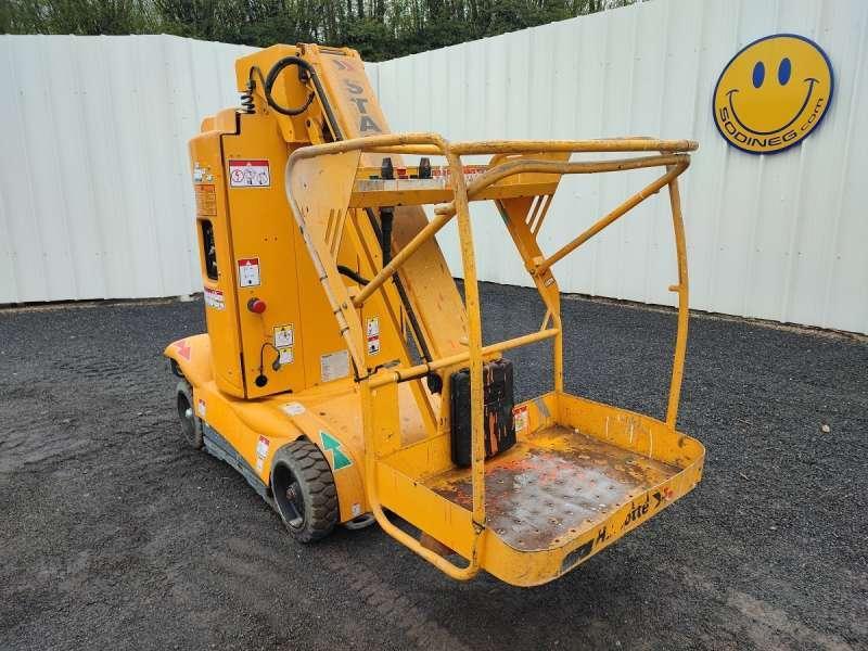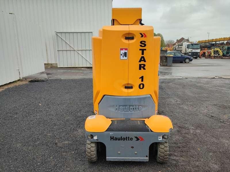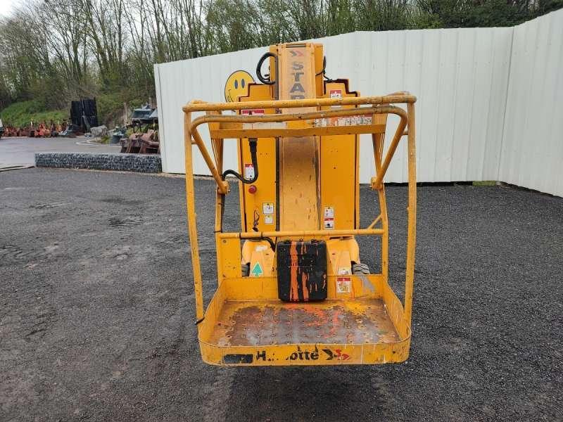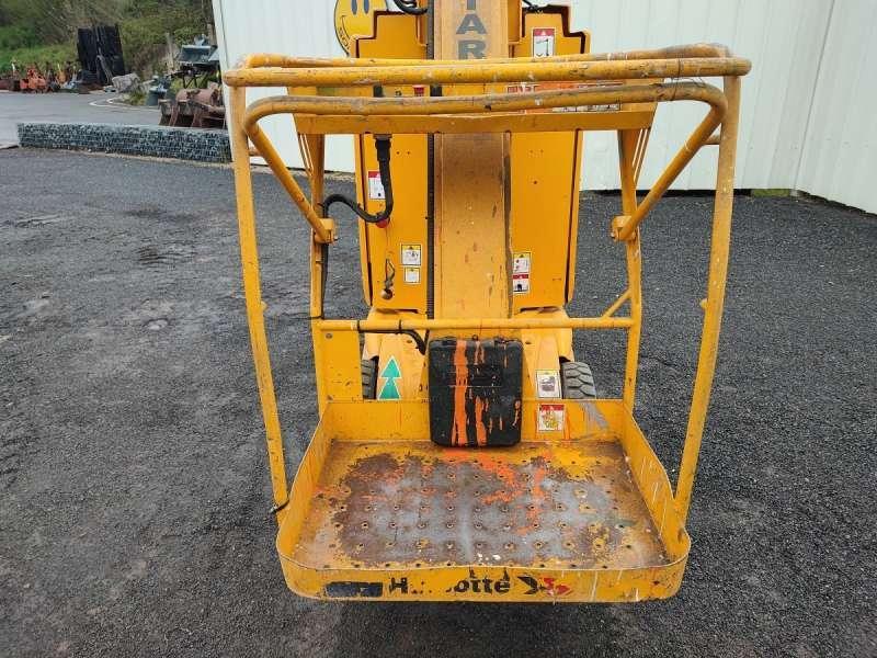 Cette nacelle de la marque Haulotte est le modèle star 10-1 de 2012. Longueur : 2 M 70 Largeur : 1 M Hauteur : 2 M Poids : 2735 kg Taille pneus : 16X5X10 1/2 Hauteur de travail : 10 M Hauteur de plateforme : 8 M Déport maximum : 3 M Vitesse de translation : 0.6 - 5 km/h Rotation de la tourelle : 345° Capacité maximum à l'intérieur : 200 kg (2 personnes) Capacité maximum à l'extérieur : 200 kg (1 personne) Pente maximum : 25 % Moteur est équipé de batteries de 24 V - 250 Ah. 608 Heures