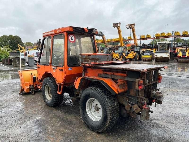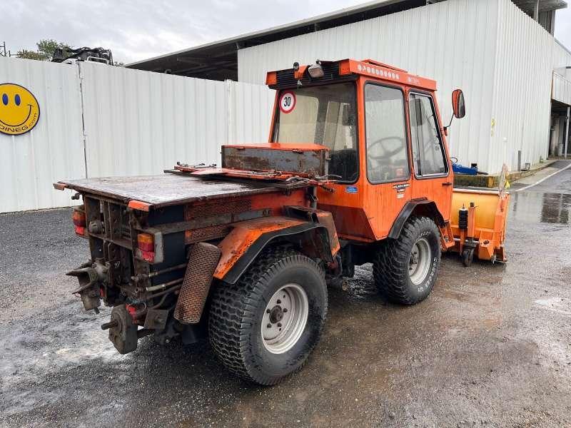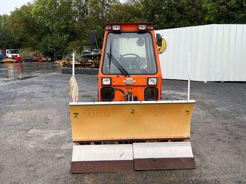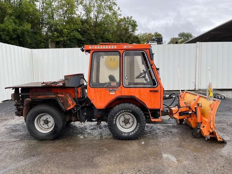 Ce véhicule de voirie de la marque Holder est le modèle C 5000 turbo de 1993. Longueur : 4 M 95 Largeur : 1 M 65 Hauteur : 2 M 10 Poids : 2240 kg Charge utile : 760 kg Taille des pneus : 33 X 12.50 - 15 Lame à neige Zaugg AG Eggiwil modèle G8K-160 de 1 M 60 9061 heures