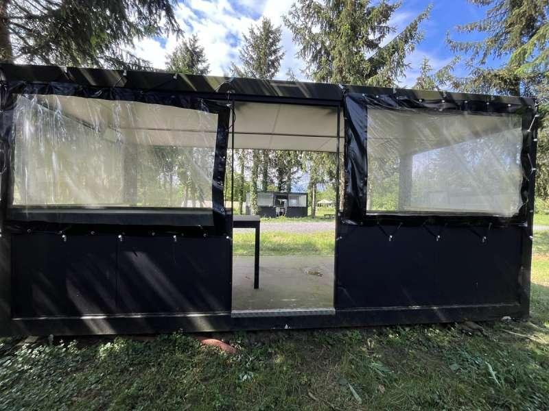 Bungalow de 15 M2. Les dimensions extérieures sont : Longueur : 6 M 03 Largeur : 2 M 43 Hauteur : 2 M 75 Les dimensions intérieures sont : Longueur : 5 M 90 Largeur : 2 M 31 Hauteur : 2 M 34