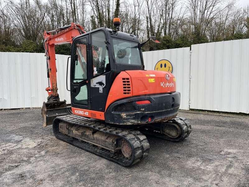 Cette pelle sur chenilles de la marque Kubota est le modèle KX080-4A de 2019. Longueur : 6 M 45 Largeur : 2 M 20 Hauteur : 2 M 50 Poids : 8315 kg. Largeur chenilles : 450 MM Flèche monobloc Déport pied de flèche Lame Clapets de sécurité Lignes hydrauliques supplémentaires Attache Morin M3 Climatisation Moteur Kubota V3307-CR-T-EF06 de 46.5 kW (63 ch) 6.383 Heures