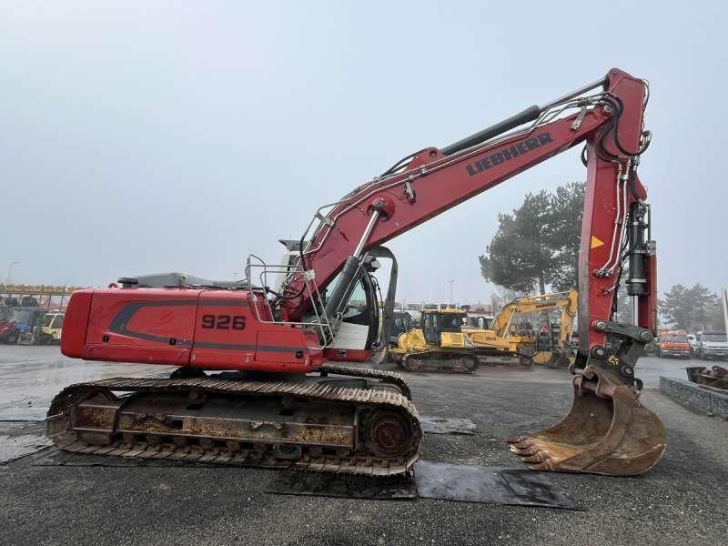 Cette pelle sur chenilles de la marque Liebherr est le modèle R926 LC de 2016. Longueur : 9 M 40 Largeur : 2 M 38 Hauteur : 3 M 07 Poids : 27.800 kg. Flèche monobloc Clapets de sécurité Graissage automatique Attache rapide Verachtert Protections de vérins Protection de cabine intégrale Caméra de recul Lignes hydrauliques supplémentaires Climatisation Moteur Liebherr D934 A7 de 120 kW (163 ch) 9000 heures