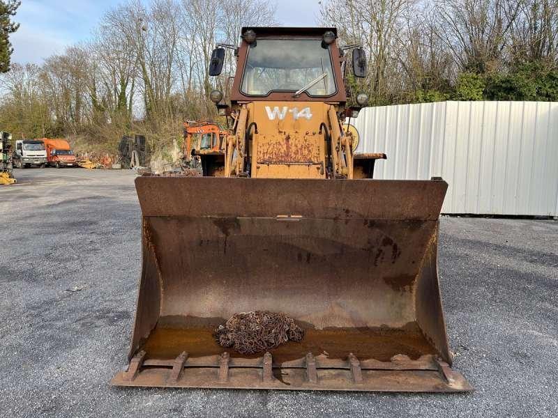 Cette chargeuse sur pneus de la marque CASE est le modèle W14 de 1983. Longueur : 6 M 07 Largeur : 2 M 25 Hauteur : 3 M 05 Poids : 14.665 kg. Taille pneus : 15.5 R 25 Capacité godet : 1530 Litres Vitesse de déplacement : 40.2 km/h Moteur Case A336BD de 62 kW (85 ch) 2.700 Heures