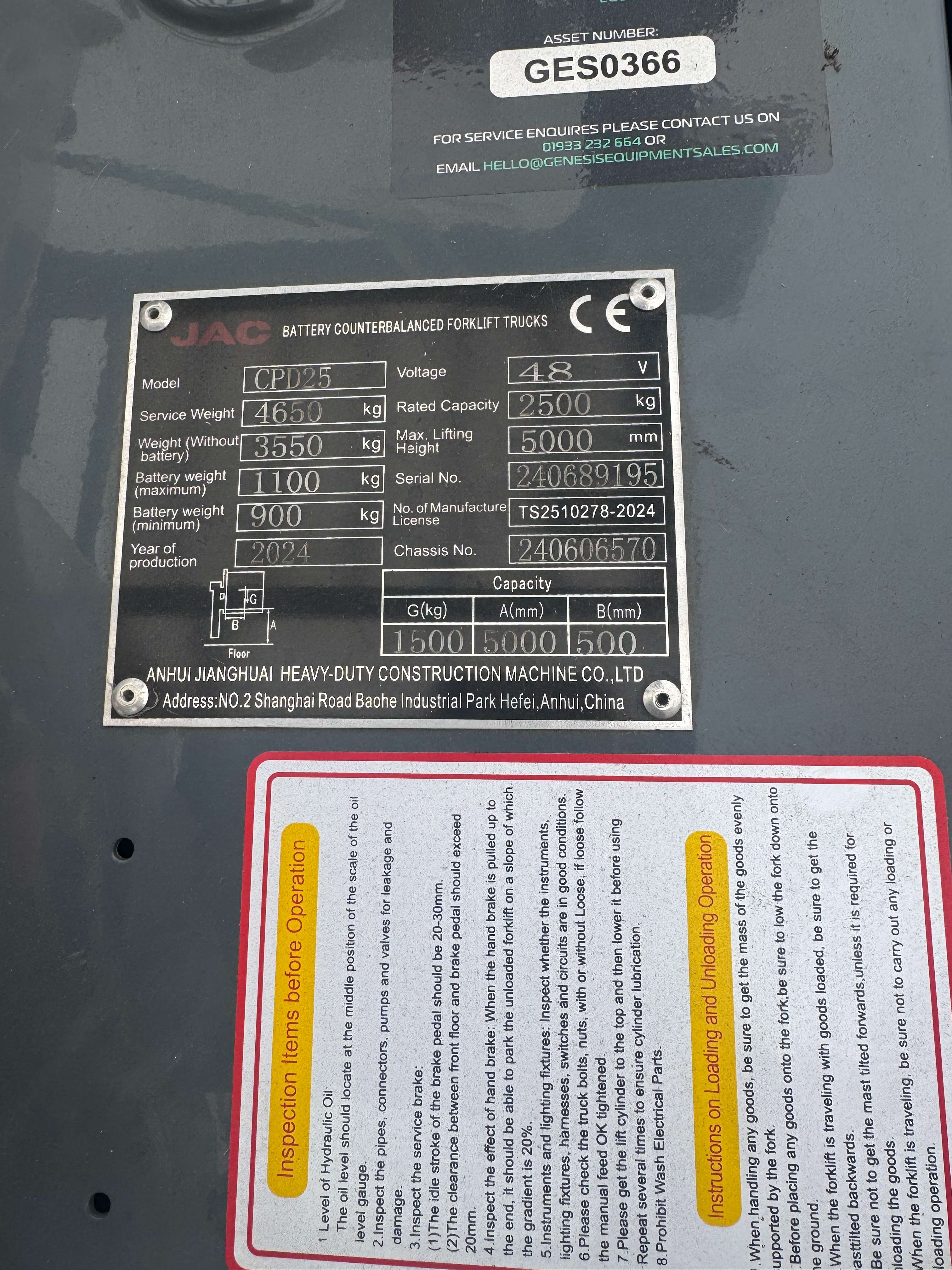 Step up your material handling game with the JAC CPD25S, the high-performance electric 2.5 ton forklift designed for intensive, all-day operations. Combining powerful lifting capability with a focus on operator safety and efficiency, the JAC CPD25S is the ideal zero-emission workhorse for busy docks, warehouses, and logistics facilities.