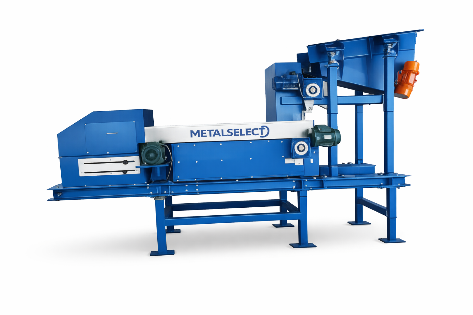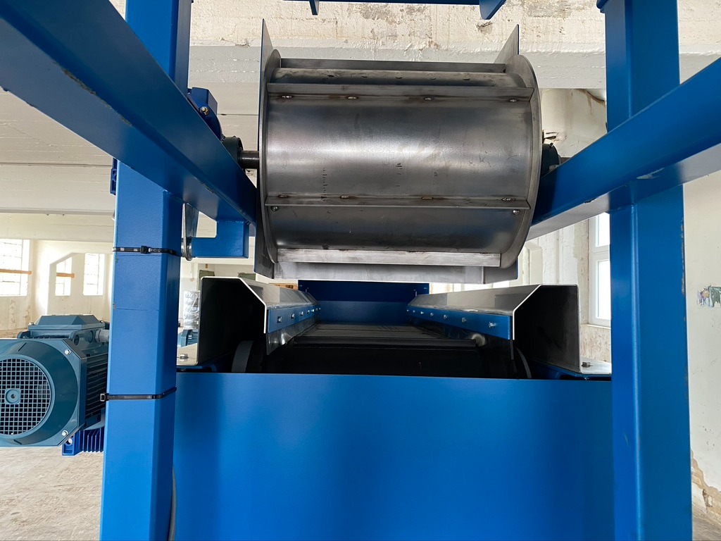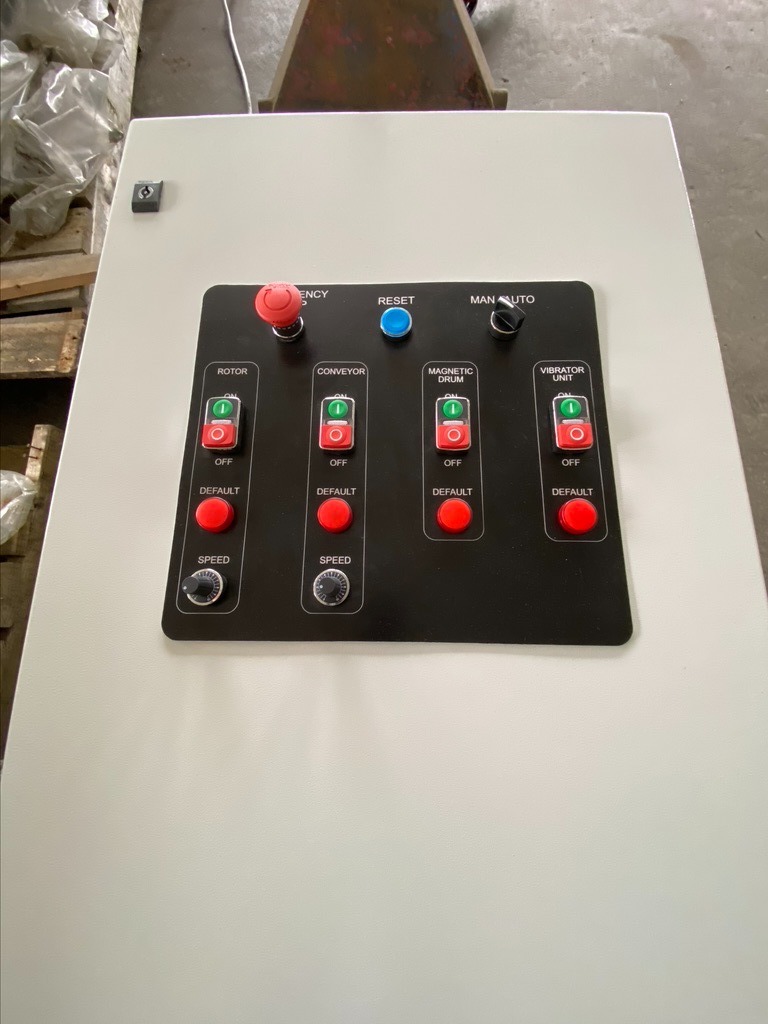 WIRBELSTROM-ABSCHEIDER MIT VIBRATIONS-AUFGABEFÖRDERER UND MAGNETTROMMEL Zur Sortierung von z.B. Eisen, Aluminium und Kupfer. Förderbreite 500 mm. (andere Förderbreiten bis 1800 mm lieferbar) 14-polige konzentrische Abscheidetrommel mit Schaltschrank 2 Stück Frequenzumrichter für das Band und die Abscheidetrommel. Hergestellt in der EU mit CE-Zertifikat. Neumaschine mit 1 Jahr Garantie. LIEFERZEIT ca. 4 MONATE.
