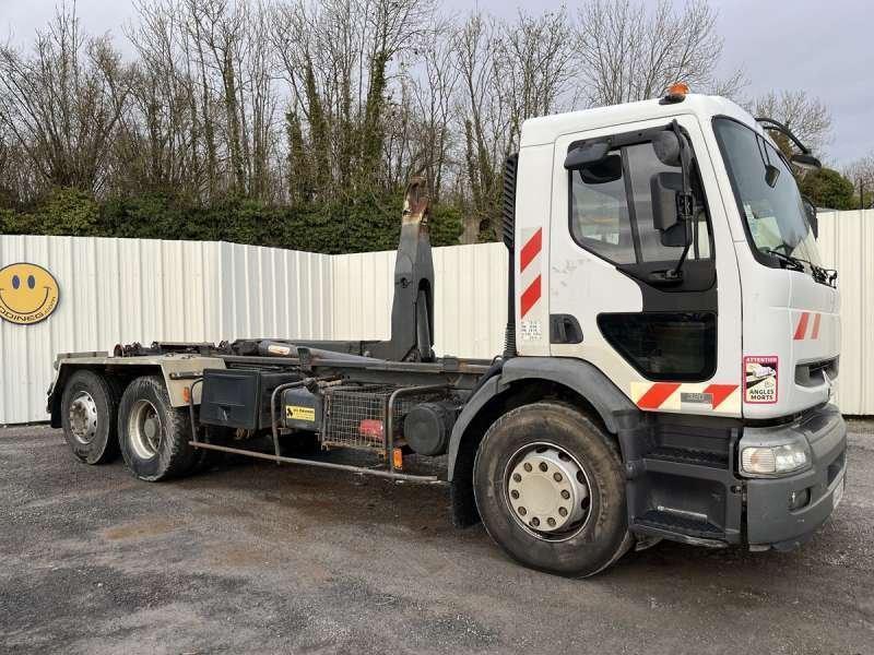 Ce camion ampli roll de la marque Renault est le modèle 320 DCI Premium de 2004. Longueur : 8 M 05 Largeur : 2 M 50 Hauteur : 2 M 86 Poids à vide : 10140 kg. Taille pneus : 315/80 R 22.5 PTAC : 26 T PTRA : 29500 kg Suspensions à air à l'arrière Suspensions à lame à l'avant Equipement ampli roll Guima Boite mécanique 593.219 km