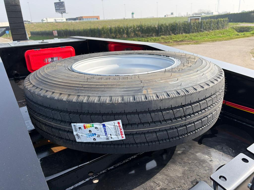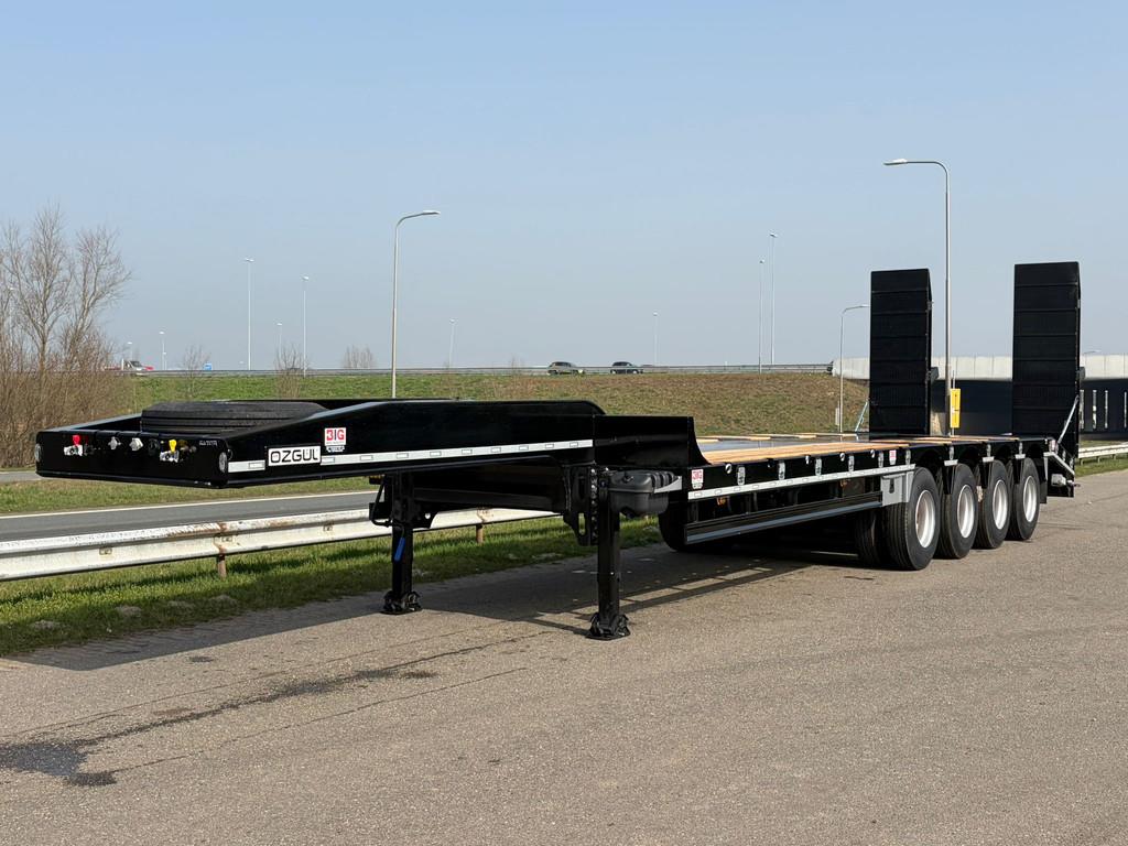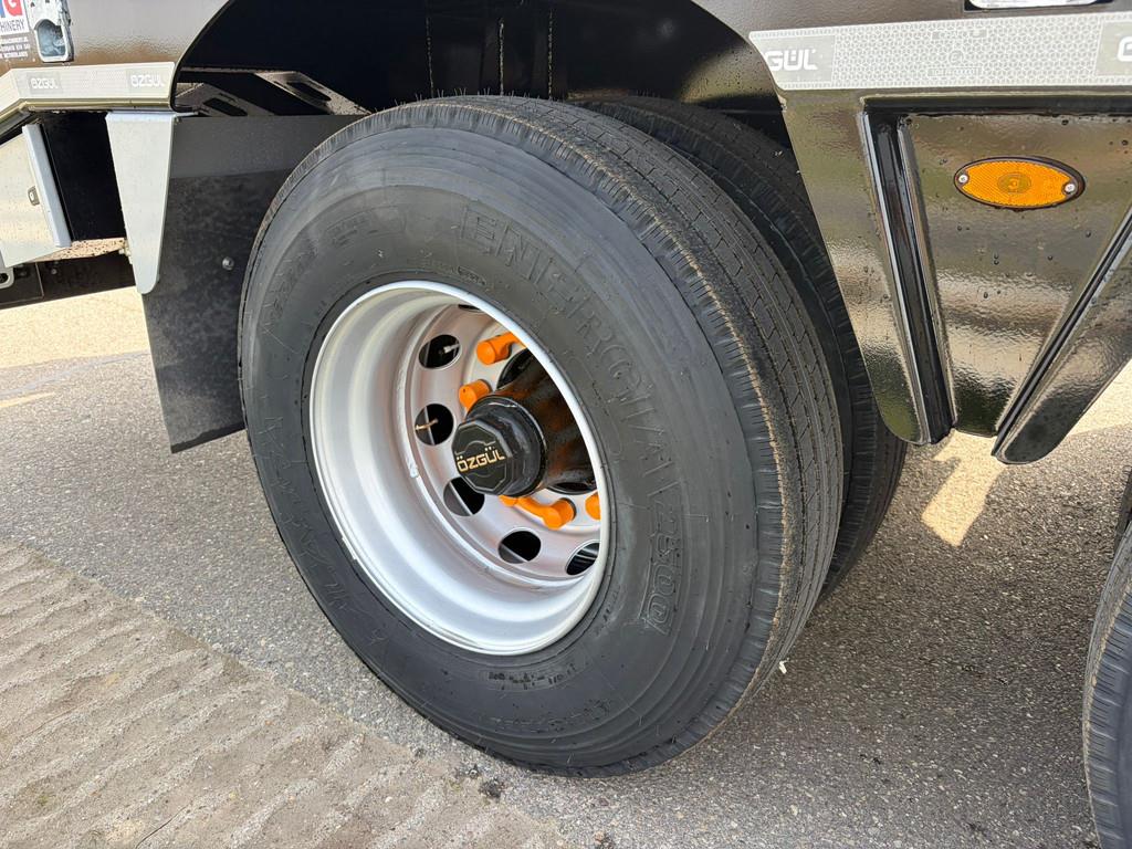 Masses & Dimensions: The vehicle has a gross weight of 90,000 kg, a payload capacity of 80,000 kg, and a curb weight of 15,540 kg. The kingpin capacity is 22,000 kg, and the axle group weighs 64,000 kg. The loading platform is 11,250 mm long, with an overall length of 15,650 mm, a width of 3,000 mm, and a loading height of 1,350 mm. The height of the fifth wheel kingpin is 1,400 mm. Construction & Chassis: The chassis is a heavy-duty I-type frame made of fully welded S355 steel with a UPE 240 outer frame for extra durability. The chassis is welded using an automatic ARC-submerged process, and the superstructure is welded with robot welding. The vehicle is equipped with 4 x 16-ton Özgül drum-brake axles, mechanical leaf spring suspension (12–14 leaves), a single-position EU-approved 2” kingpin (Çayırova Brand), 16+1 12 R 22.5 tires on 9.00 x 22.5 steel rims, and a mechanically operated two-speed landing gear (Gos Brand). Technical Features & Accessories: The braking system is a two-line air brake with emergency and service brake chambers. The 24V electrical system meets SAE/ADR standards and provides all-around lighting. The loading platform consists of a combination of 6/7 mm chequered steel and wooden edges, and the hydraulic rear loading ramps (2800 x 900 mm) are reinforced with steel bars. = More information = Empty weight: 15.540 kg CE mark: yes