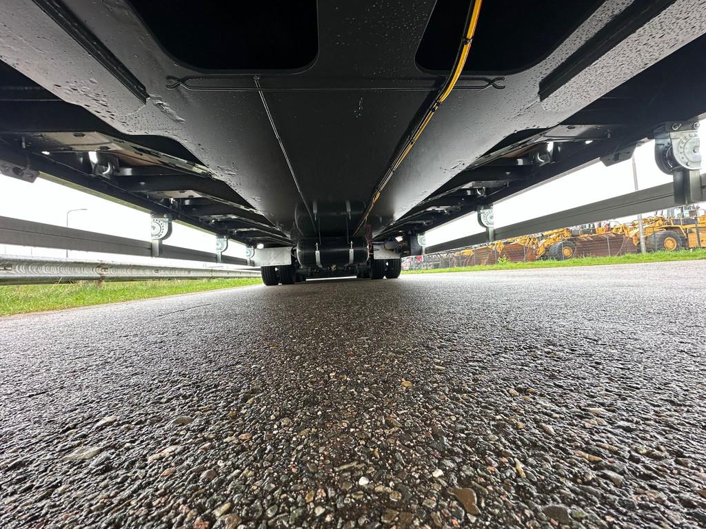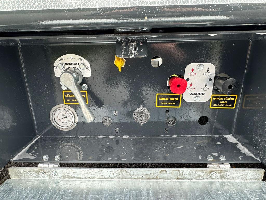 MASSES & DIMENSIONS Gross Vehicle Weight (kg) : 58.000 Loading Platform Length (mm) : 9.000 Weight of Axle Group (kg) : 36.000 Total Lenght (mm) : 13.550 Kingpin Capacity (kg) : 22.000 Total Width (mm) : 2.550 Curb Weight (kg) : 12.300 Loading Platform Height (mm) : 920 Pay Load (kg) : 45.700 Height of 5.th Wheel (mm) : 1.310 CONSTRUCTIONS Base Chassis Heavy duty and extra durability designed BOX type chassis All welded S355 steel chassis. Outer frame is UPE 240 profile. Welding (Chassis) : Automatic ARC submerged. Welding (Superstructure) : Automatic robot welding. Axle (Type) : Özkoç Trax or Osman Koç Turkish Brand Drum brakes 3 x 12 Ton axles Axle Lifting : 1st axle automatic Suspension (Type) : Air Suspension. Steering Axles : 3rd Axle self steering. King pin (Type) : 1 position with 1x coupling-pen 2” (EU approved) Çayırova Brand. Tires : 12+1 Units, 245 / 70 R 17.5 Fulda or Pirelli or Goodyear Brand. Rims : 12+1 Units, 6.75 x 17.5 steel rims. Jantas or Ako Brand. Landing Gear : Mechanical operated by one side, two speed. Gos Brand. Brake System : Wabco EBS (4S/3M) with RSS according to EC Directive with ADR Adaptation. Brake Chamber 1 axles with 2 units emergency brake chambers. 2 axle with 4 unit service brake chambers. Electric System 24V, 2x7 + 1x15 pin sockets, according to SAE standard with ADR Adaptation SABA Brand. • 2 x Rear Stop Lights. - 4 x Side LED Lights. • 2 x White LED Lights - 2 x Front LED Lights • 2 x Registration Plate Lights - 2 x rotating Lights Floor Above tyres and edges of platform are covered chequered sheet and hard wood,the middle surface is covered by flat sheet steel. Rear Loading Ramps Hydraulic operated rear ramps with Electro pump for rear ramps hydraulic function with cable push – button for remote control.Folding type rear ramps length 2500 mm +1500 mm width 900 mm,covered all steel.Rear ramps are sliding internal and external hydraulic. Short steel ramps behind of neck. Color : Upon Request Paint Application Sand Blasting, Chemical cleaning, HYZINC covering, Epoxy covering and 2 coats of acrylic paint. TECHNICAL SPECIFICATIONS Accessories • 2 x 7 pcs of heavy duty lashing rings mounted on the outer frame mushroom type • 4 x Certificated Expray mud flaps. • 1 x Plastic water tank • 2 x Wheel chocks and holders • 2 x 7 Galvanized sides extensions brackets 250 mm + 250 mm • 2 x Side Protections, Aluminium • 1 x Tool box. • 1 x spare Wheel carrier with 1 tire(on the gooseneck) • 2 x Manual support Legs at the rear. • 2 x Reflective tape and reflector sign at the rear and sides. • 2 x Side extensions reflector • Steel front panel(height:400mm) • Aluminum side panels on gooseneck section(height:400mm) • 1 plaque places on rear ramps or bumper = More information = Empty weight: 12.300 kg CE mark: yes COC available: Yes