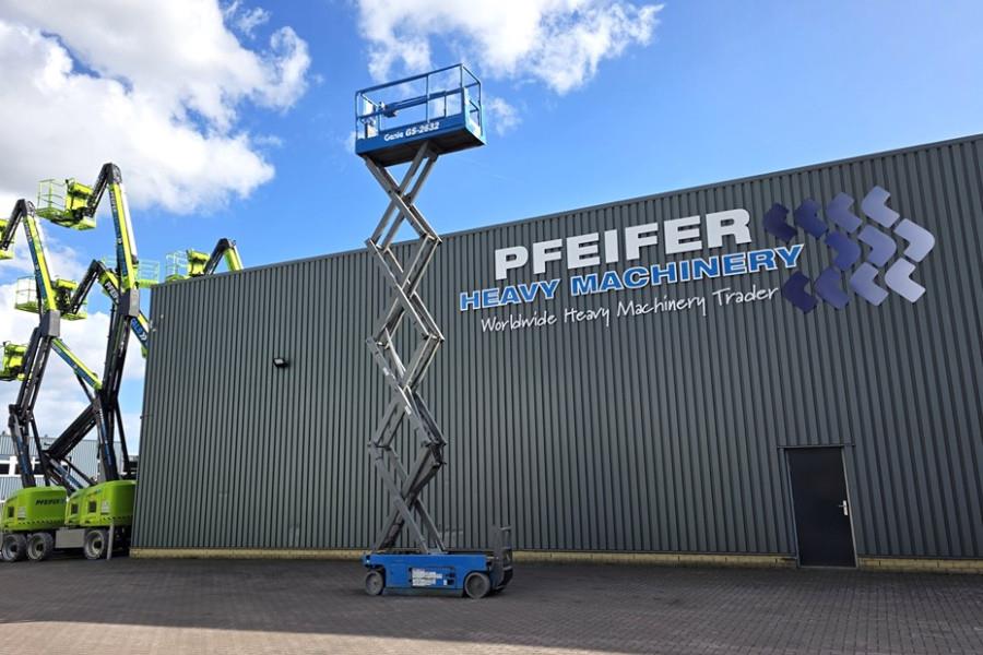 Manufacturer: Genie Typ: GS2632 Building year: 2011 Fuel: Electric Serial number: GS3211C-1018 Working hours: 564 h * Working Height: 10 m * Platform extension: 0.91m. * Drive: 2 wheel drive and steer (front) * Non Marking Tyres CE (Declaration of Conformity). More detailed pictures / product movie on our website. pfeifermachinery.com Above specifications are subject to change without prior notice and subject to errors.