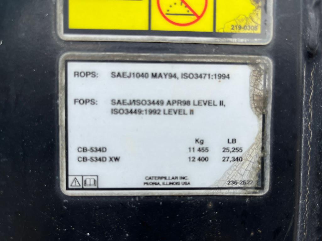 Used Caterpillar CB534D Tandem Roller – 2006 – For Sale at BIG Machinery This Caterpillar CB534D tandem roller, built in 2006, is available for sale at BIG Machinery in the Netherlands. The machine is CE certified, EPA 2004 compliant, and equipped with an air-conditioned cabin and a camera for enhanced operator comfort and safety. With 8,286 operating hours, this roller is suitable for road construction and compaction projects. • Year: 2006 • Condition: Used • Certification: CE certified • EPA: 2004 • Operating hours: 8,286 • Cabin: Air-conditioned • Camera Interested in this Caterpillar CB534D? Contact BIG Machinery for more information, inspection details, or a quotation. We deliver worldwide and can arrange complete export documentation and transport from our headquarters in the Netherlands. Why Choose BIG Machinery? At BIG Machinery, you benefit from over 30 years of experience in the trade of new and used machines. With our headquarters in the Netherlands, a dedicated and cohesive team, and extensive expertise in sea transport, we ensure reliable and fast delivery worldwide. We offer competitive market prices, carefully selected machine quality, and the assurance of a long-term partnership. With our own transport services, we provide seamless and efficient support from start to finish. Choose BIG Machinery as your trusted partner and discover why we are the preferred choice for customers worldwide. Quality, speed, and reliability – Buy BIG! = More information = Empty weight: 10.500 kg