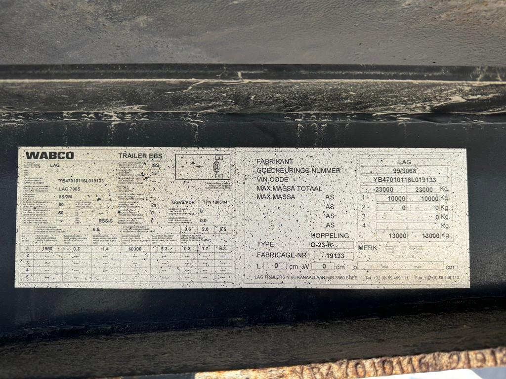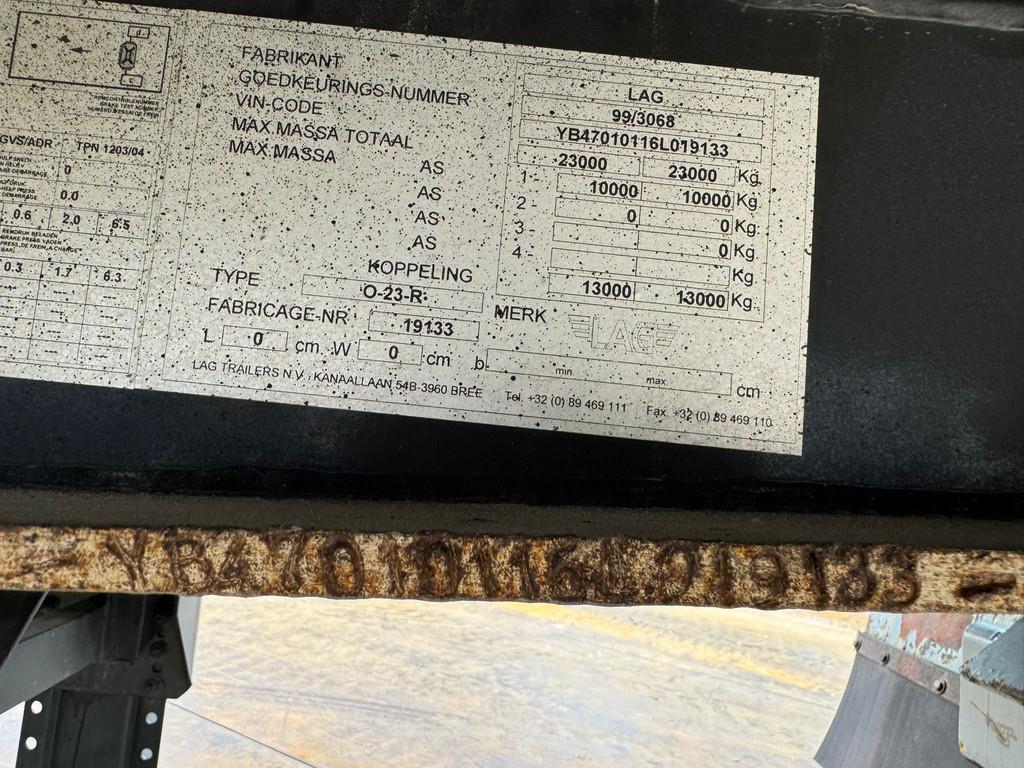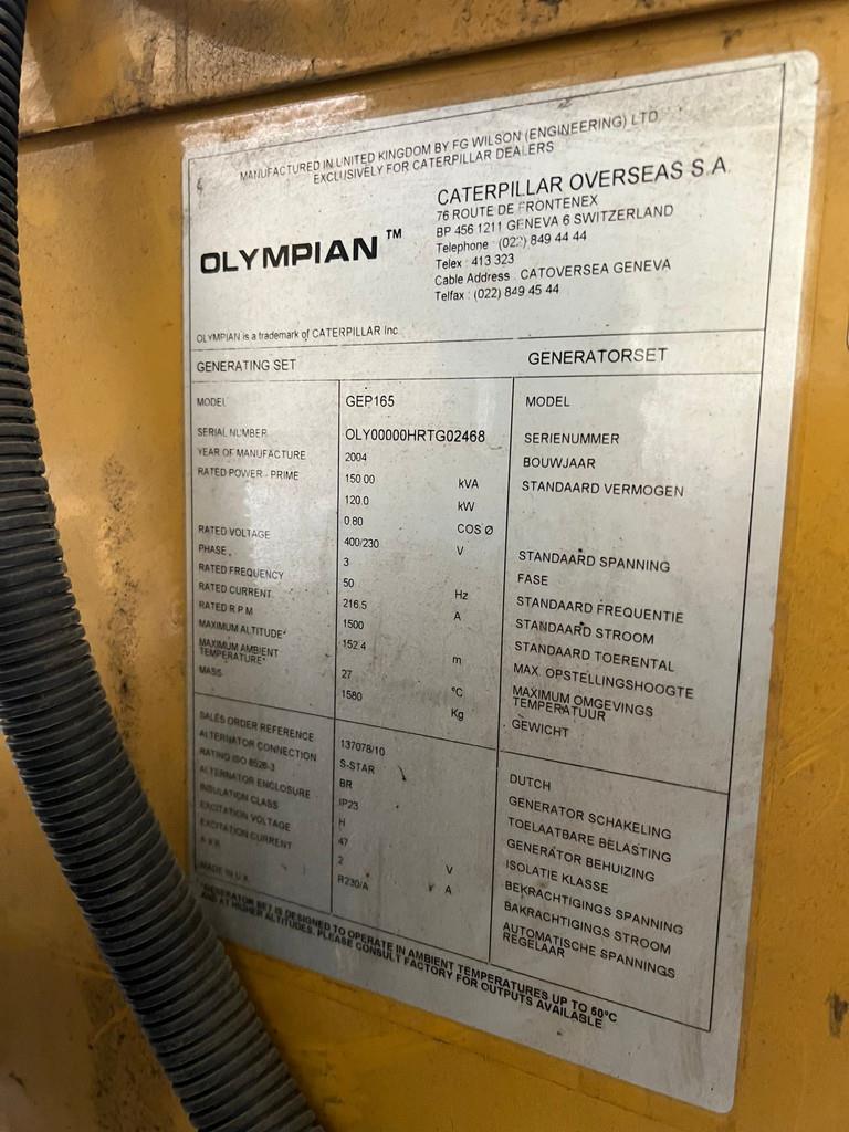Olympian silent generator build on 2006 LAG O-23-R 1 Axle trailer. LAG F6 Year: 2006 Axle: 1 Axle brand: R.O.R. Axle type: TM 22508 KMX Wheelbase: 5700 mm Brake brand: R.O.R. Elsa 195 Suspension: Air supsension Flexair plus 11000 Tires: GoodYear 265/70R19.5 Belgium registration documents 2004 Olympian GEP165 150 kVA Genset Engine: Perkins CC660 Serial number: OLY00000HRTG02468 Rated output: 150 kVA Rated output engine: 120kW Rated Voltage: 400/230V Rated Frequency: 50Hz Rated Current: 216.5 A = More information = Empty weight: 14.300 kg