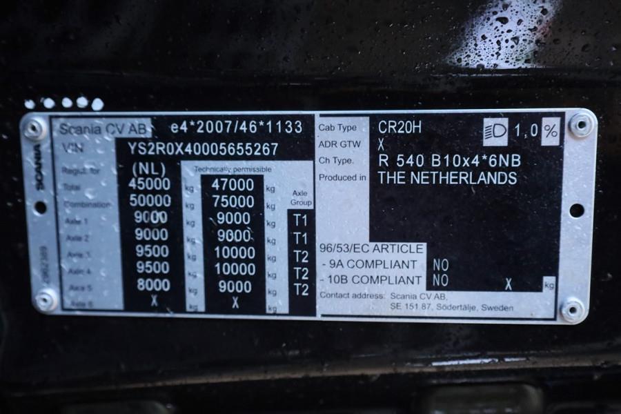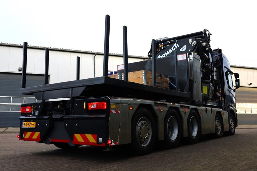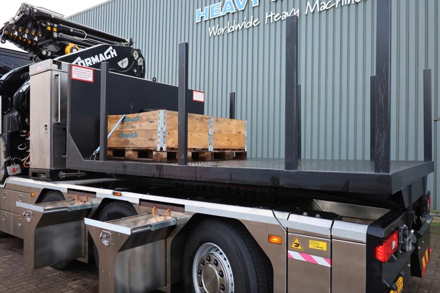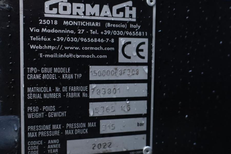 Scania R540 B10x4*6 NB EQUIPED WITH CORMACH 150000 E8F308 HP KNUCKLEBOOM CRANE. This Scania has a valid inspection and can be sold with warranty. Inform about our conditions! This Scania R540B 10x4 with Cormach 150000 E8F308 crane is also available for rental! TRUCK Manufacturer: Scania Typ: R540 B10x4*6NB Fuel: Diesel Chassis number: YS2R0X40005655267 SPECIFICATIONS SCANIA R540 10X4 - EURO 6 SCANIA DC13 166 540HP - GRS905R GEAR GEARBOX - ADJUSTABLE 5 th WHEEL. - TOW BAR - LAST AXLE STEERING - BOGIE SET - TAG AXLELIFT - AIRSUSPENSION CRANE Manufacturer: Cormach Typ: 150000 E8F308 HP Serial Number: 783801 SPECIFICATIONS CORMACH 150000 E8F308 HP - 8 EXTENSIONS ON THE BASIC BOOM - 8 EXTENSIONS ON FLYING JIB (hydraulic) - CONTINUOUS SLEWING - QUICK DISCONNECT FOR EASY JIB REMOVAL - DANFOSS CONTROL BANK - WINCHKIT 2.500KG - RADIO REMOTE CONTROL - VARIO BASED OUTRIGGER SYSTEM - PREDISPOSITION FOR POWERPACK - PULL LIMITING DEVICE FOR WINCH WITH LEVEL 5 - CRANE CONVERSION FOR PLATFORM USE (INCL. HYDRAULIC LINES TO THE TOP OF THE JIB) - WORKING LIGHT LED INSTALLATION ON MAIN BOOM - WORKING LED LIGHT INSTALLED ON THE FLY-JIB (MAIN BOOM) Unique to these truck is that the length (including front outrigger) does not exceed 9.99m and weight is less than 30T. This has the advantage that you can drive into the city centers with this crane! CE (Declaration of Conformity). FOR MORE INFORMATION AND ALL SPECS PLEASE FEEL FREE TO CONTACT US! More detailed pictures / product movie on our website. pfeifermachinery.com Above specifications are subject to change without prior notice and subject to errors.