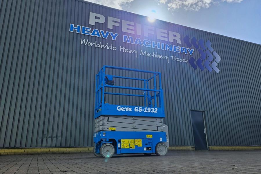 Manufacturer: Genie Typ: GS1932 Building year: 2015 Fuel: Electric Serial number: GS3015C-18745 Loading / lifting capacity: 227 kg Working height: 7.8 m Drive speed: 4 km/h Number of axles: 2 Drive / Steering: 4x2 / 2 Gearbox typ: Hydrostatic Non Marking Tyres: 70% Platform length (extended): 2.54 m Platform extension capacity: 113 kg Height of machine railing folded: 1.75 m * CE (Declaration of Conformity) More detailed pictures / product movie on our website. pfeifermachinery.com Above specifications are subject to change without prior notice and subject to errors.