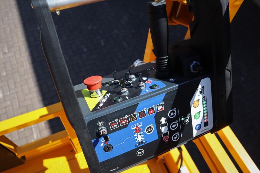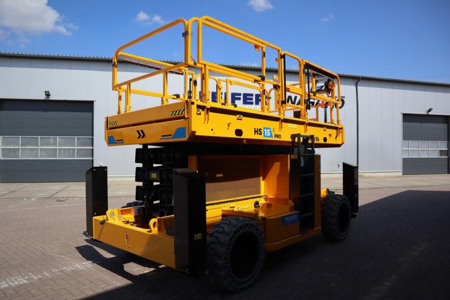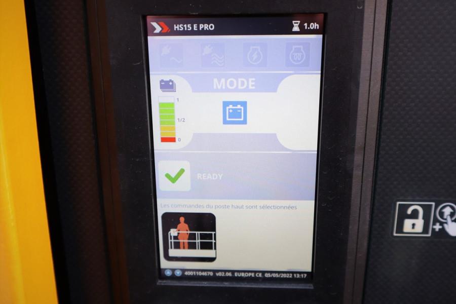 This machine has a valid inspection and can be sold with warranty. Inform about our conditions! This Haulotte HS15E PRO is also available for rent! Manufacturer: Haulotte.. Typ: HS15E PRO Building year: 2022 Fuel: Electric Serial nr: 2110045 Working height: 15 m Lift capacity: 750 kg (4 pers.) Height - stowed: 3.05 m Height - guardrails lowered: 2.25 m Drive speed: 5 km/h Max. drive working height: 15m Gradeability: 45 % Ground clearance 30.7 cm Non Marking Tyres 4 wheel drive Front oscillating axle - 6° Dual platform extensions Haulotte Activ''Screen AC motors 48V battery pack Two drop bar entries Folding handrails Outriggers with centralized or individual controls Mechanical axle with manual locking rear differential Haulotte Activ''Energy Management: smart battery management system & manual centralized watering Haulotte Activ''Lighting System for safe loading in conditions of low visibility CE (Declaration of Conformity). More detailed pictures / product movie on our website. pfeifermachinery.com Above specifications are subject to change without prior notice and subject to errors