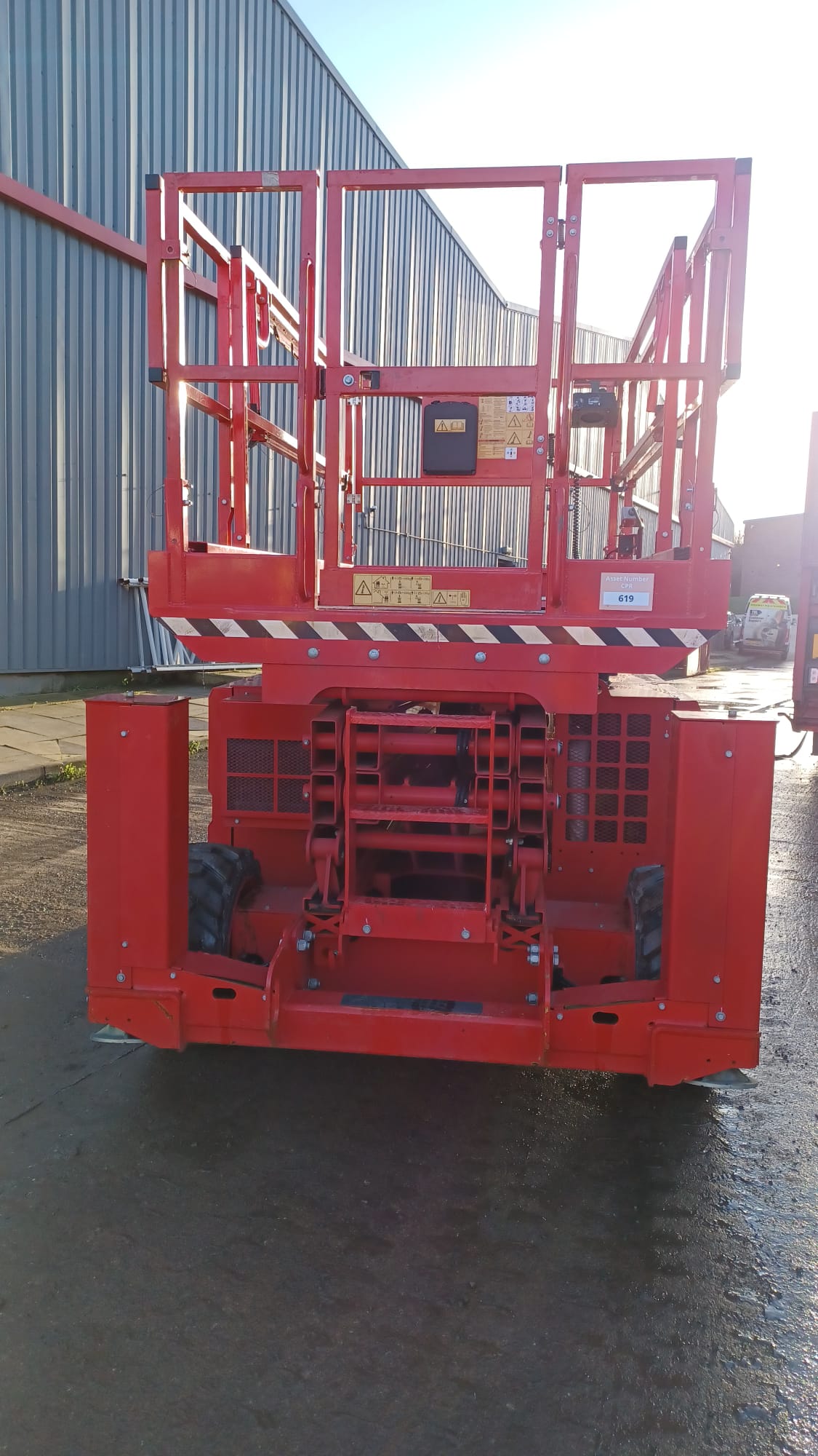 10M WORKING PLATFORM, 7.7M PLATFORM HEIGHT, 680KG LOAD RATE, ROUGH TERRAIN DIESEL SCISSOR, SOLD WORKING WITH NO VISIBLE LEAKS