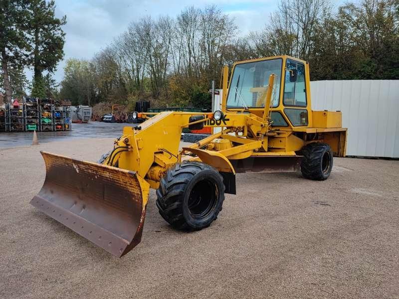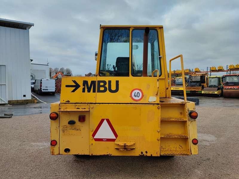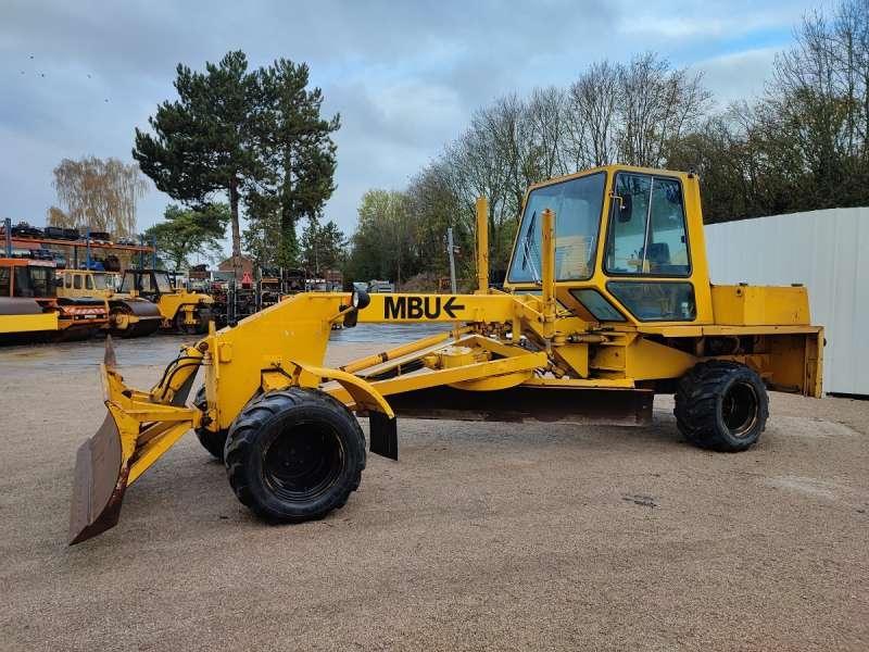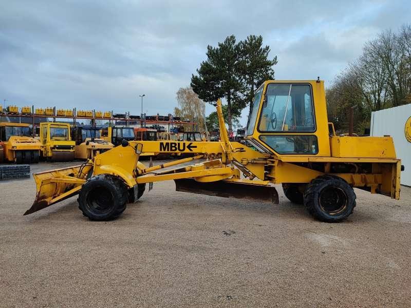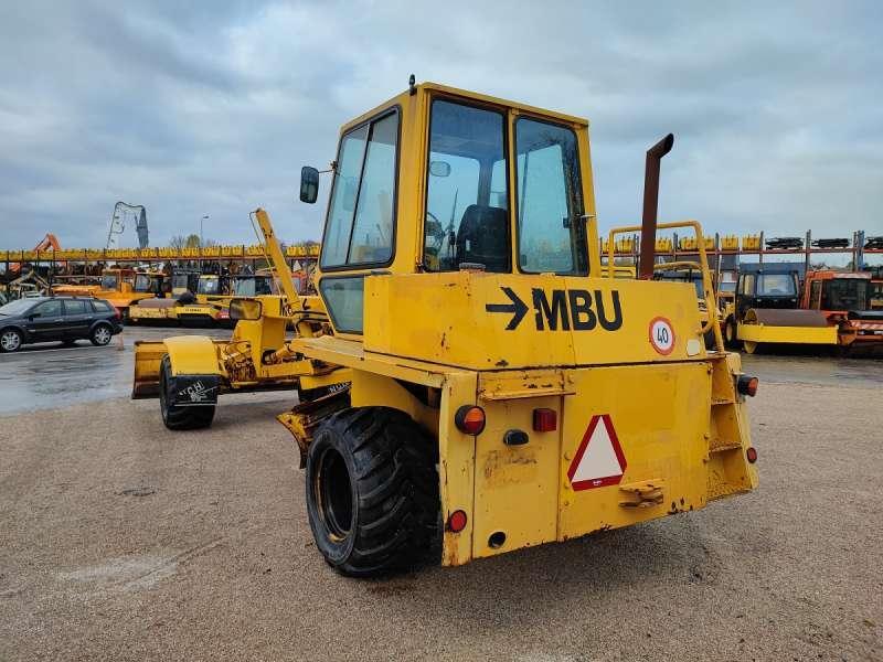 Cette niveleuse de la marque MBU est le modèle G6 de 1984. Longueur : 7 M 53 Largeur : 2 M 48 Hauteur : 2 M 96 Poids : 9700 kg Taille des pneus : 500/45-20 Lame avant : 2 M 48 Lame centrale : 3 M 05 Moteur Deutz F 5L 912D de 68 kW 2641 heures