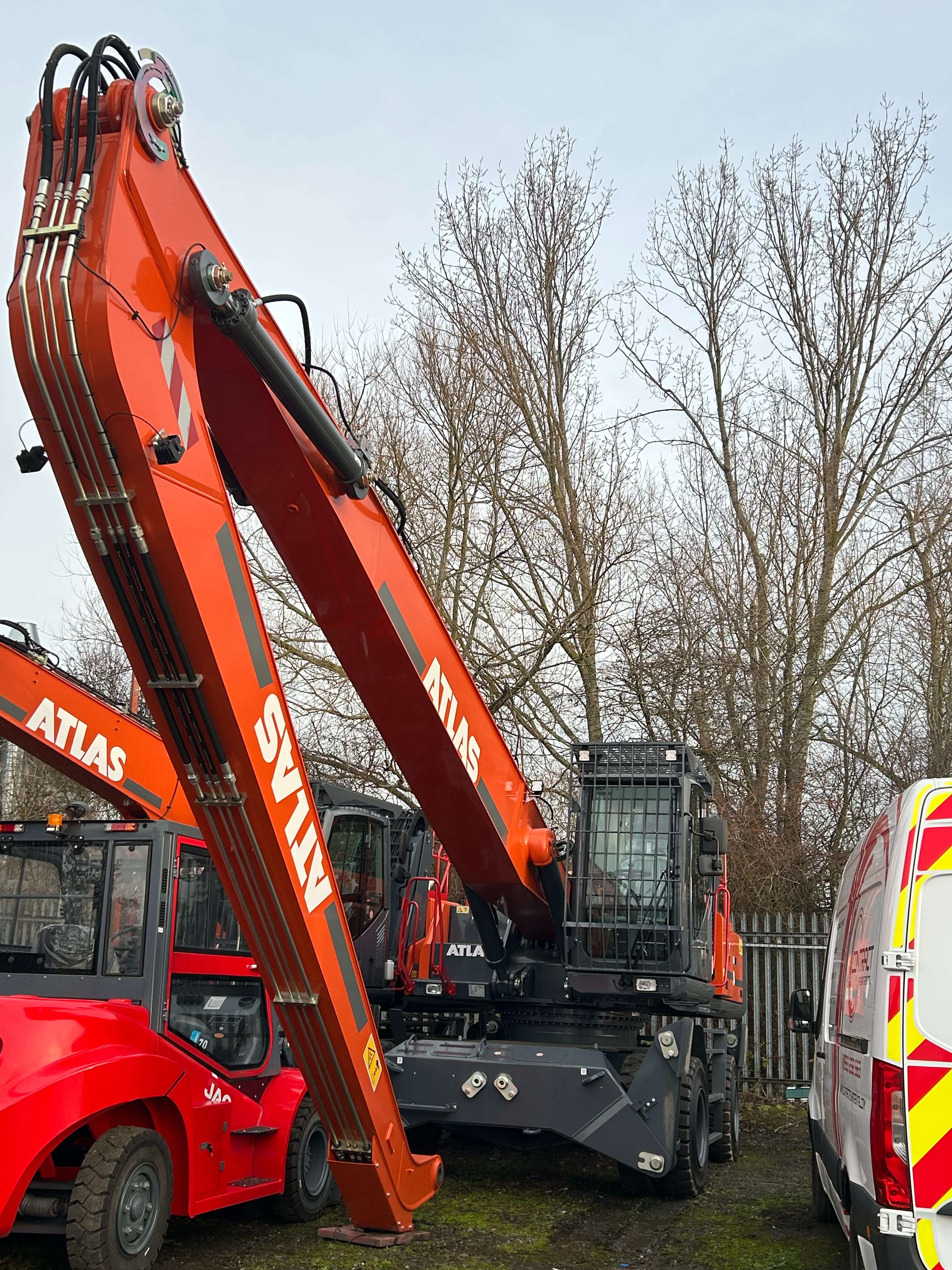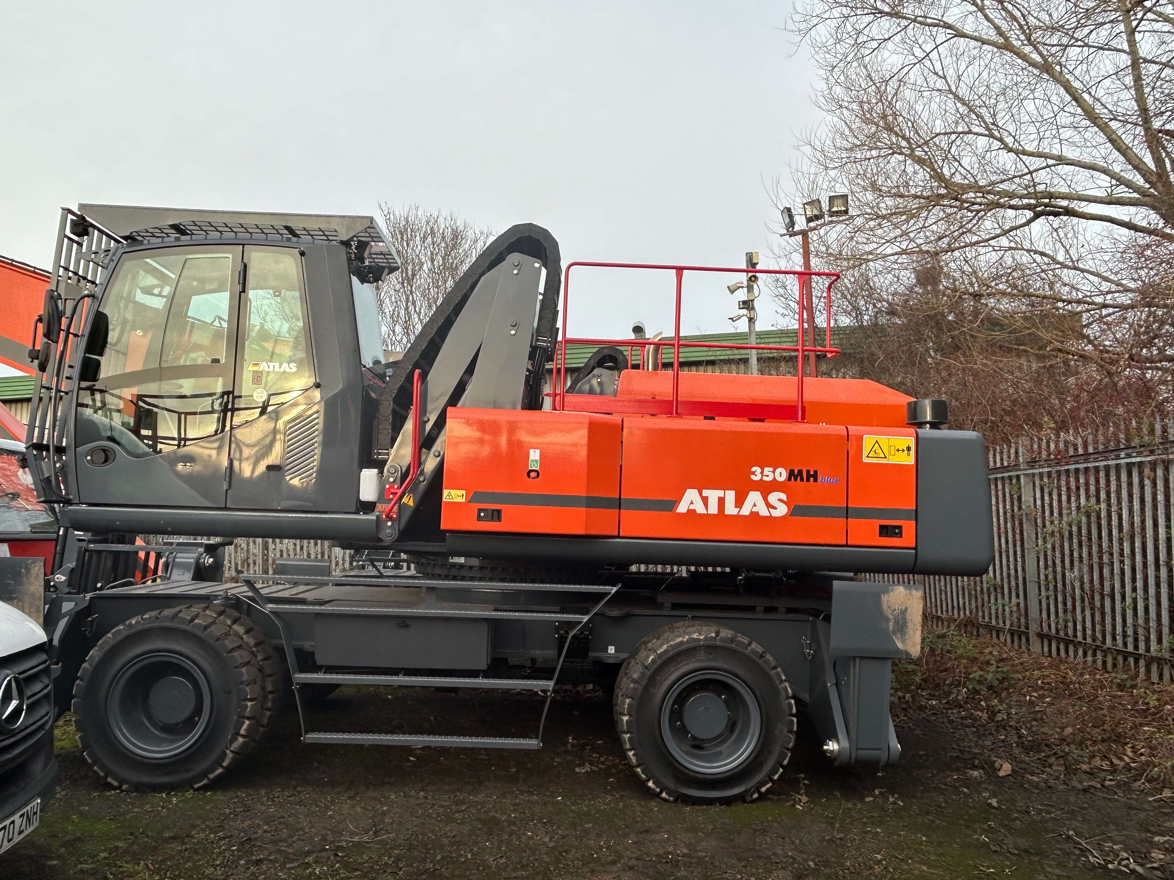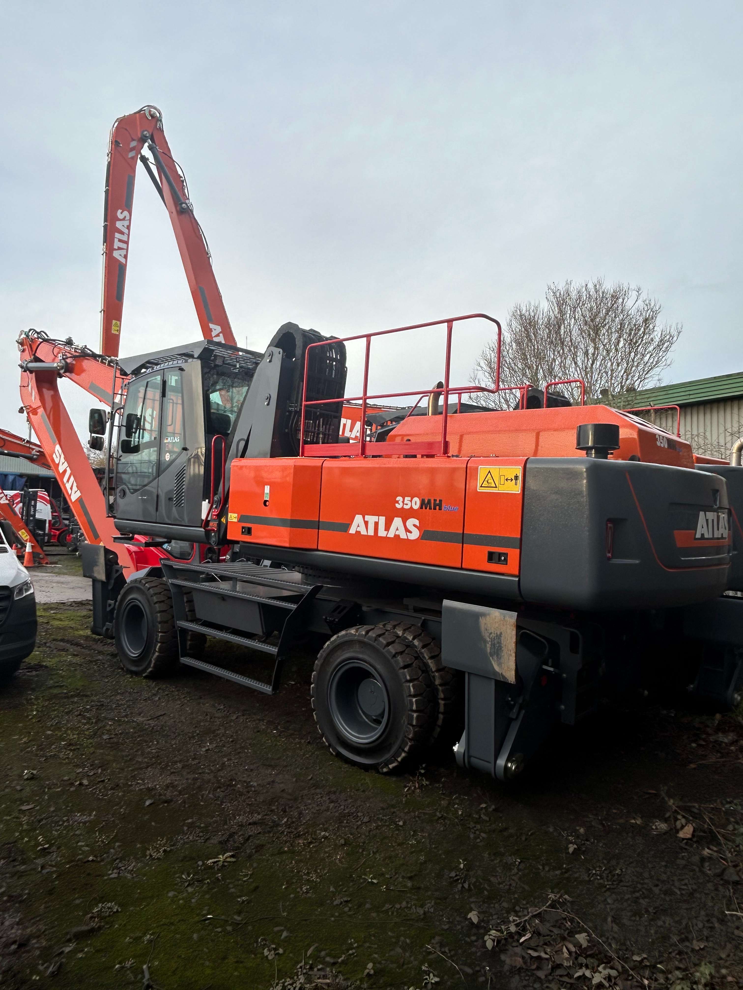 The Atlas 350MH is a heavyweight 36-tonne material handler designed for high-capacity scrap processing, port handling, and large-scale recycling. Specifically configured with a 17-meter reach (up to 18.2m maximum), this machine offers the expansive working envelope needed to clear large yards, load deep-sea vessels, and feed industrial shredders with unmatched efficiency.