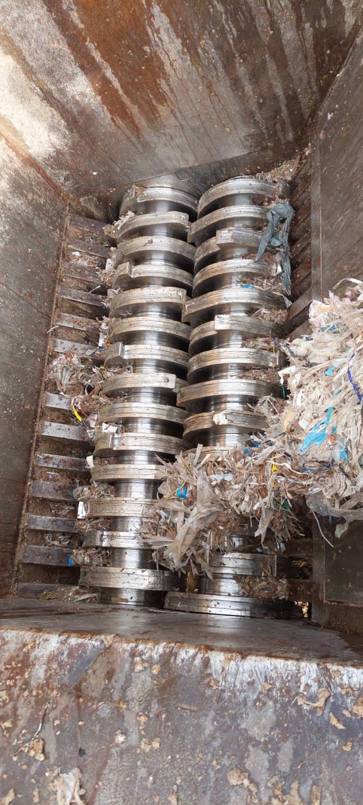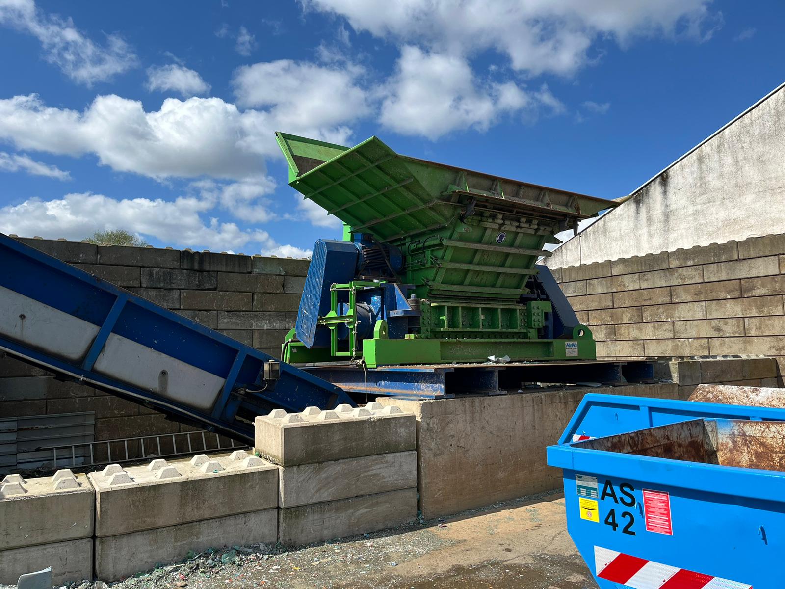- Rotorschere Typ MEWA UC 201 - Antrieb elektrisch 2 x 75 kW - Rotorlänge: ca. 2 Meter - Breite der Messer: 70 mm - Gewicht ca. 50 Tonnen - inkl. Kettengurt-Förderer für den Austrag des Produktes