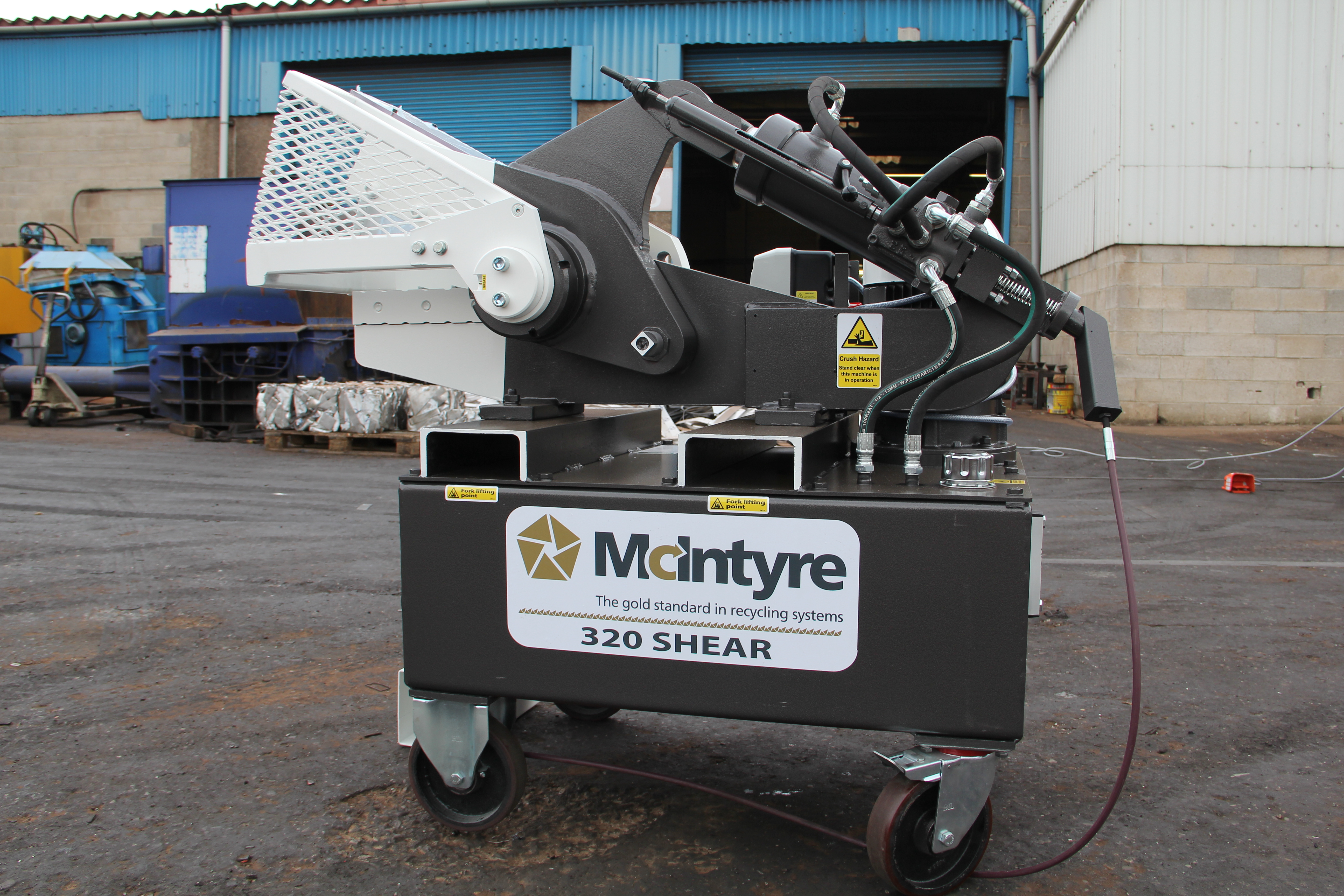 Refurbishment Available - please note that the photos used are of new 320 shears! Used McIntyre 320 alligator shears offer a reliable and cost-effective solution for scrap yards, recyclers and engineering workshops needing dependable metal cutting equipment. The 320 is one of the most popular mid-size alligator shears for processing scrap metal, known for its simple design, durability and ease of operation. Key Benefits • Proven scrap yard cutting solution • 320 mm blade length • Suitable for ferrous and non-ferrous metals • Ideal for cutting scrap bar, tube, aluminium sections and general scrap • Simple hydraulic design for easy operation and maintenance Alligator shears are widely used in metal recycling to cut and prepare scrap for further processing or shredding. Typical Technical Overview (Specifications are typical for the model and may vary depending on refurbishment and configuration) • Blade Length: approx. 320 mm (12") • Electric Motor: approx. 7.5 kW • Hydraulic alligator shear design Inspection & Refurbishment Available Our used machines can be supplied with: • Full inspection and testing • Hydraulic and mechanical checks • Replacement of worn components where required • Refurbishment and servicing • Fresh spray paint finish We cater to all budgets and operational needs by offering quality refurbished machines. Contact us to discuss availability and refurbishment options.