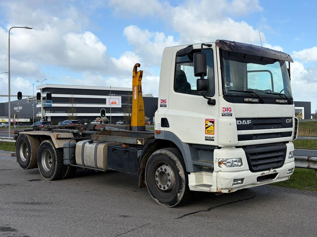 Used DAF CF 6x2 Hooklift Truck – 2005 – For Sale at BIG Machinery This DAF CF 6x2 hooklift truck is now available for sale at BIG Machinery in the Netherlands. Built in 2005, this machine has 642.637 km. The truck is equipped with a hooklift system, hydraulic lifting arm, and features a 6x2 axle configuration. It comes with a day cab, steel fuel tank, and rear mudguards. • Model: DAF CF 6x2 • Year: 2005 • Mileage: 642.637 km • Axle configuration: 6x2 • Hooklift system • Hydraulic lifting arm • Cabin: Day cab • Fuel tank: Steel • Rear mudguards Interested in this DAF CF 6x2? Contact BIG Machinery for more information, inspection details or a quotation. We deliver worldwide and can arrange complete export documentation and transport from our headquarters in the Netherlands. Why Choose BIG Machinery? At BIG Machinery, you benefit from over 30 years of experience in the trade of new and used machines. With our headquarters in the Netherlands, a dedicated and cohesive team, and extensive expertise in sea transport, we ensure reliable and fast delivery worldwide. We stand out with our competitive market prices, carefully selected machine quality, and the assurance of a long-term partnership. With our own transport services, we provide seamless and efficient service from start to finish. Choose BIG Machinery as your trusted partner and discover why we are the preferred choice for customers worldwide. Quality, speed, and reliability – Buy BIG! = More information = Drive: Wheel Empty weight: 44.000 kg CE mark: yes