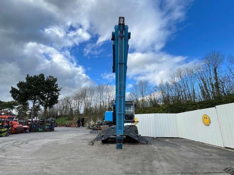 Cette pelle industrie de la marque Fuchs est le modèle MHL 350 de 2016. Largeur : 3 M 46 Hauteur : 4 M 02 Poids : 37800 kg. Taille pneus : 650/65 R 25 Longueur flèche : 9 M 10 Longueur balancier : 5 M 35 Clapets de sécurité Protections de vérins Protections cabine Caméra de recul Graissage centralisé automatique Cabine élévatrice 4 stabilisateurs Crochet d'attelage Pommier Climatisation Moteur Deutz TCD 6.1 L6 de 215 chevaux. 1854 Heures