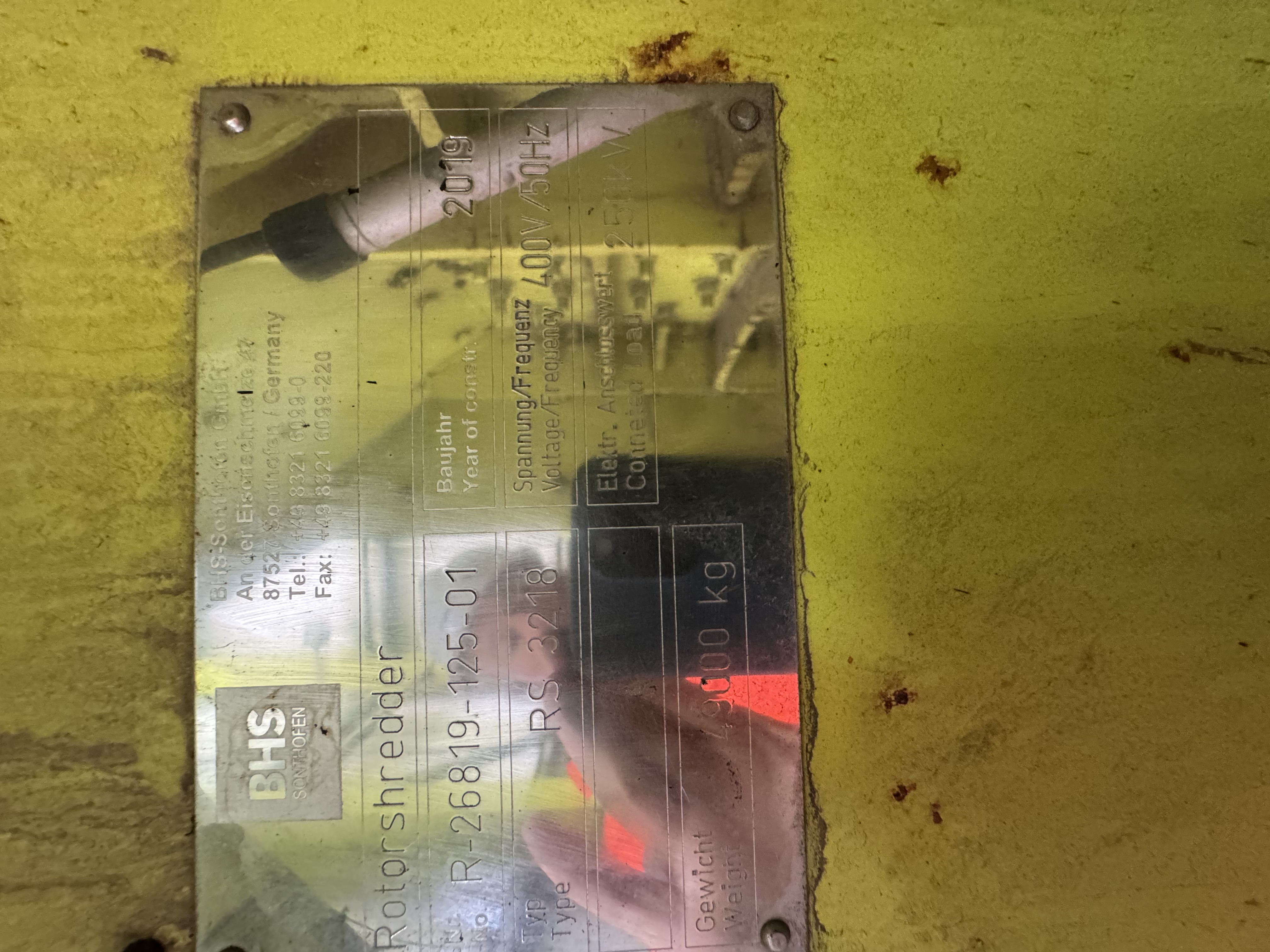 2019 BHS Rotorshredder Model RS3218 (mill and infeed conveyor only) Chamber measurements Diameter 3200mm Height 1800mm Feed opening 1500mmx 1500mm Drive power 250kW