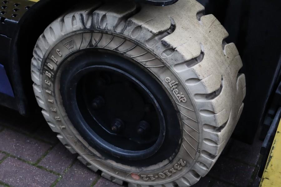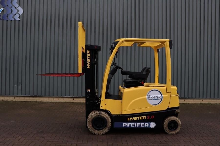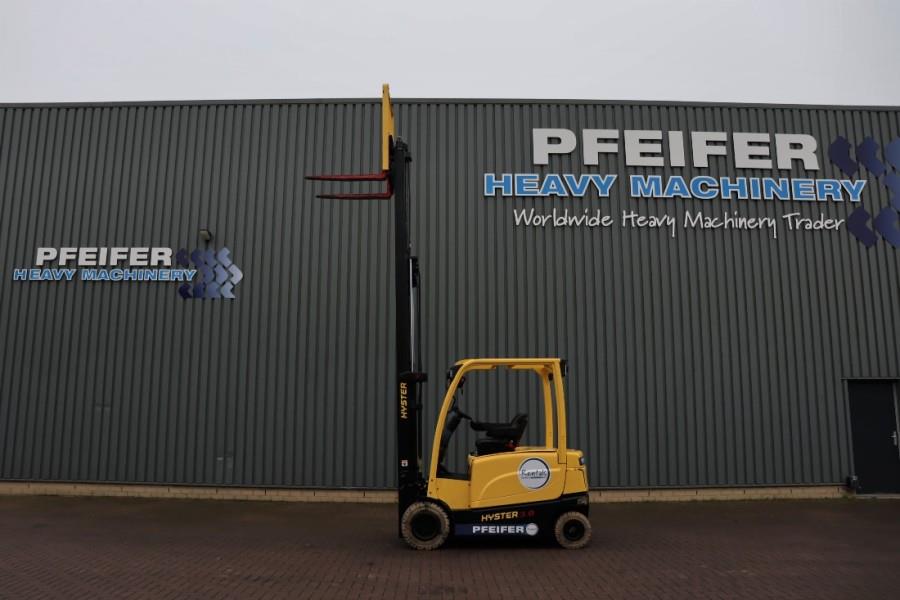 3t Electric Forklift. Manufacturer: Hyster Fortens. Typ: J3.0XN Building year: 2017 Fuel: Electric Serial number: A276B08886R Battery / Type: 80V - 775Ah (5 PzS 775) Loading / lifting capacity: 3.000 kg. Drive speed: 18 km/h. Number of axles: 2. Tyre manuf. / Size Front: Trelleborg / 28x9 R 15 Tyre manuf. / Size Back: Trelleborg / 23x10-12 * Mast typ: Triplex stage * Lifting height: 4.615 mm * Freelift Height: 1.430 mm * Side shifting Height with mast: 2.28 m Lenght without forks: 2.65 m More detailed pictures / product movie on our website. pfeifermachinery.com Above specifications are subject to change without prior notice and subject to errors